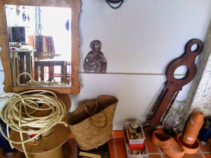 On my jaunts around town, in demolition containers, eco-points, excursions at the Flea Market ground (the day after), I collect all sorts of mosaic shards, pieces of pottery and porcelain, broken crockery... Then, is organization time, cleaning, separation and classification, according to color, pattern, size and shape, and all shards are ready to be used...